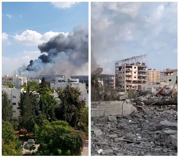 جنگ بین اسرائیل و حماس، مانند بسیاری از جنگ‌های این قرن، با تصاویری که در گوشی‌های هوشمند سراسر جهان پخش می‌شود، تعریف شده است. سمت چپ: ستونی از دود بر فراز اشکلون، اسرائیل، در یک ویدئوی منتشر شده در اینستاگرام دیده می‌شود؛ سمت راست: تصاویری از خسارت در محله الریمال در شهر غزه. سمت چپ: sultanovmr888@، از طریق Storyful؛ سمت راست: محمد دحلان، از طریق Storyful