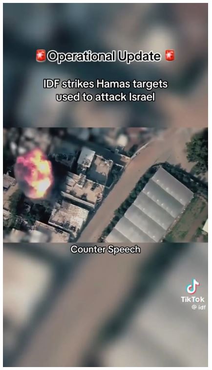نیروهای دفاعی اسرائیل TikTok هایی از حملات خود به اهدافی که به گفته آنها اهداف حماس بودند، تولید کرده‌اند. نیروهای دفاعی اسرائیل، از طریق TikTok