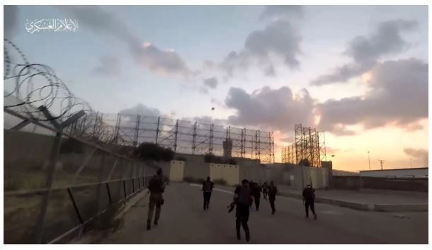 تصاویری که توسط شاخه مسلح حماس در تلگرام منتشر شده است، گروهی از مبارزان را نشان می‌دهد که به ایست بازرسی گذرگاه اریز، مرز اصلی بین نوار غزه و اسرائیل، یورش می‌برند.