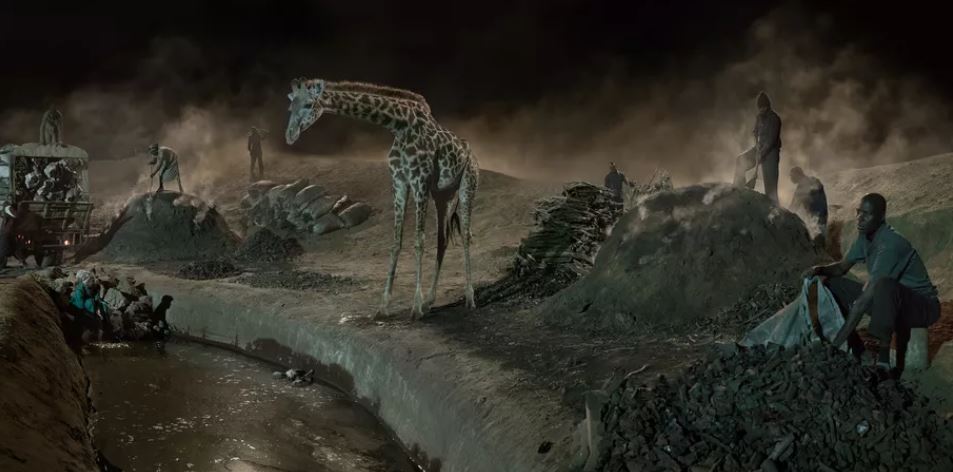 تاثیر انسان/ نیک برانت/ زغال سوزاندن با زرافه و کارگر، 2018/ گالری ادوین هوک
